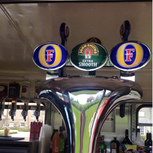 We are delighted that our Vintage Bus Bar offers, fully chilled products on tap, supplied and installed by Heineken UK– Foster’s Lager, John Smiths and Strongbow Cider. A full range of spirits, premixed drinks and packaged beers come as standard on the Bus Bar – Special Menu offers are easy too – if you want a Champagne or Whisky Bus Bar? We simply stock it to your requirements. The Thistle Vintage Bus Bar has full refrigeration on- board, in addition, a refrigerated trailer ensures that the fridges on our bus are restocked with drinks that are already cooled. This Vintage Bus is in full working order, however, it is not a party bus – it becomes a bar when stationary .